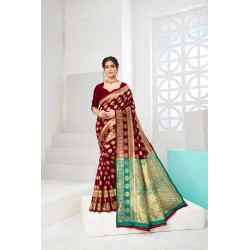 Sari indien noir et rouge satiné décor antique – Raffinement traditionnel | Expédition 24h France