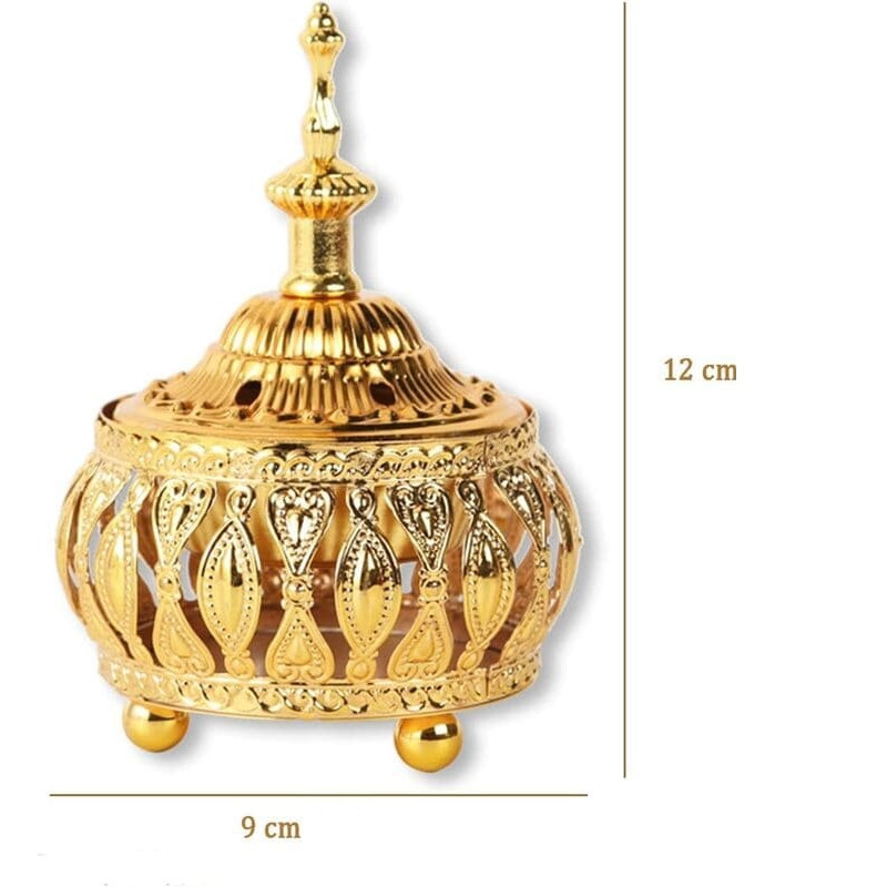 Encensoir arabe vintage doré, mini brûleur d’encens en métal, idéal bakhour et cônes parfumés.