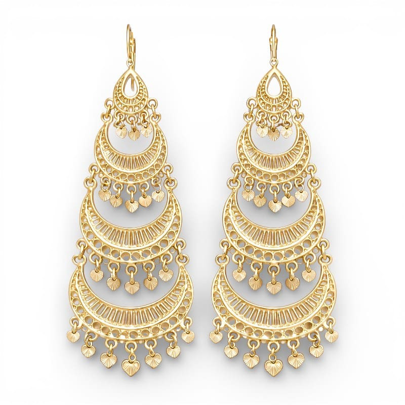 Boucles d’oreilles orientales plaqué or à breloques, design raffiné inspiré des bijoux traditionnels.