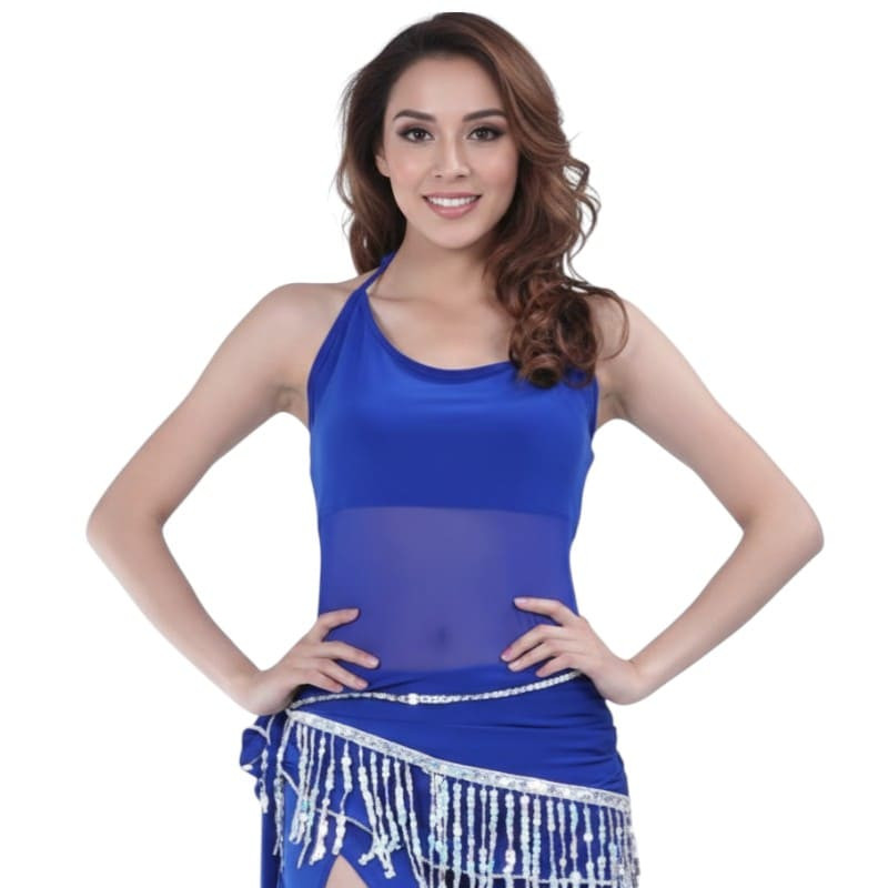 Haut de danse orientale bi matière à nouer autour du cou, en lycra stretch et résille.