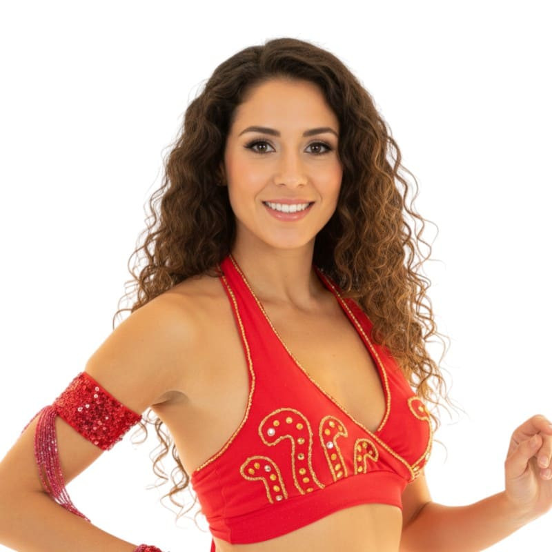 Choisissez l'harmonie et la grâce avec ce top dos nu de danse perlé or