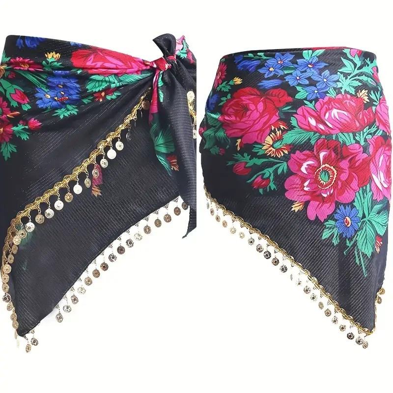 Mettez vos hanches en valeur avec ce superbe foulard de danse orientale noir. Sa coupe triangulaire, son galon doré et ses sequins scintillants apportent éclat et élégance à chacune de vos chorégraphies, que ce soit en cours ou sur scène.