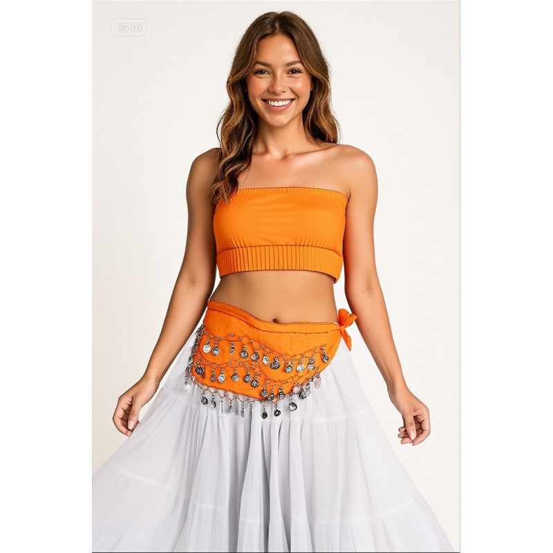 Ceinture danse orientale orange à prix imbattable – légère, 150 cm, idéale pour débuter.