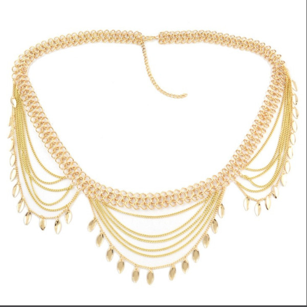 En métal doré ultra brillant et munie d'un crochet qui vous permettra de l'ajuster à l'endroit que vous souhaitez, cette ceinture bijou est un excellent accessoire qui mettra en valeur vos hanches et vos déhanchés.