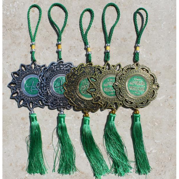 Ultra léger , le médaillon en forme d’arabesque contient les inscriptions religieuses de couleur or ou argent selon les modèles.