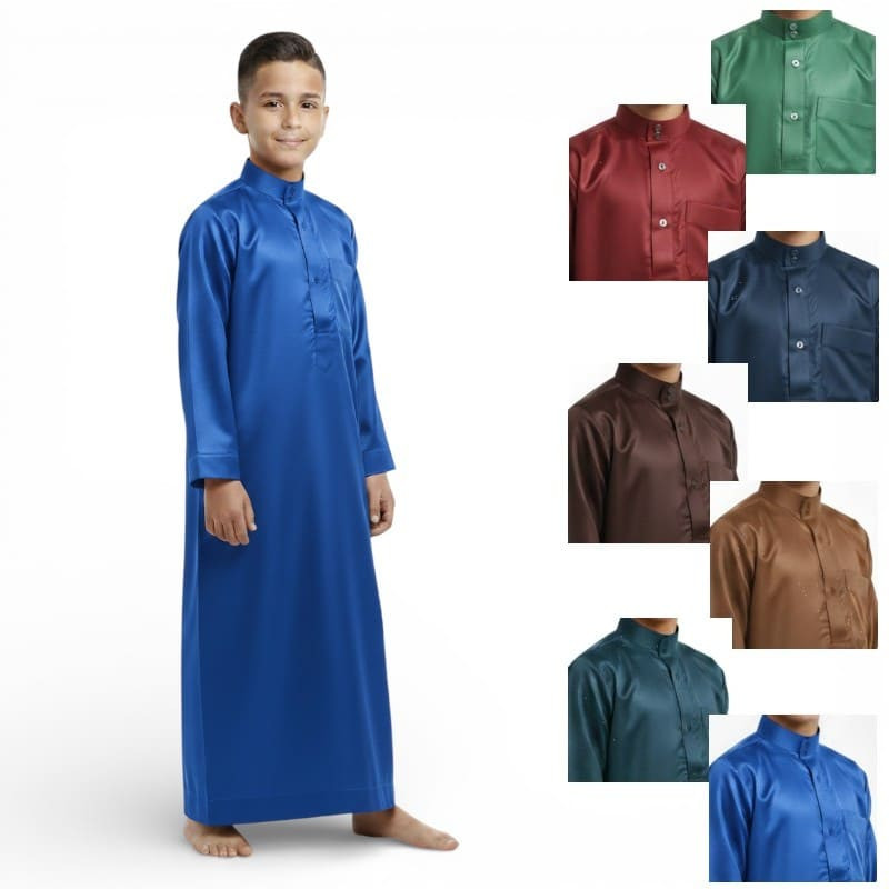 Ce qamis enfant saoudien satiné est un excellent compromis entre élégance, confort et praticité. Il accompagne l'enfant lors de moments importants avec une tenue soignée, durable et agréable à porter.