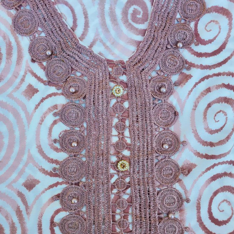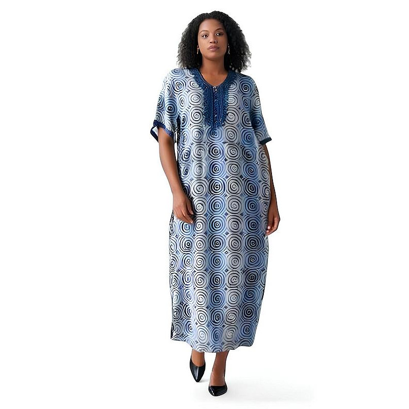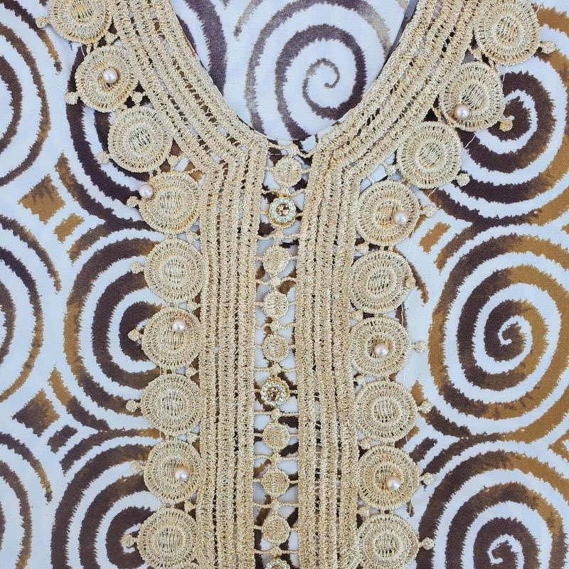 Djellaba femme imprimé géométrique, broderie perles et strass, 4 couleurs, disponible du M au 3XL.