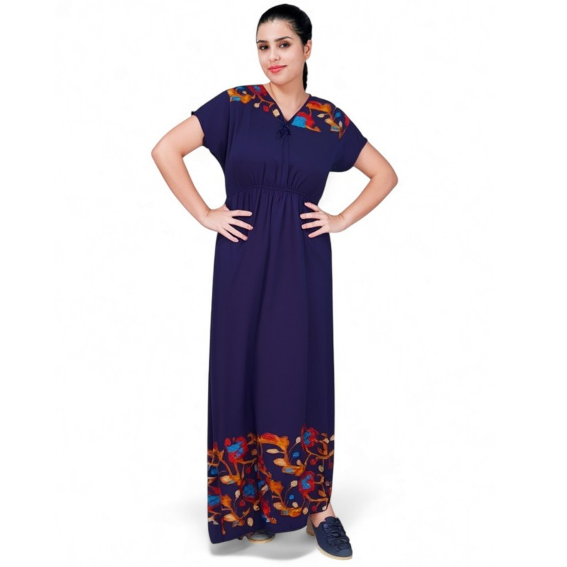 Conçue dans un tissu coton ultra fluide et léger, avec manches courtes et élastiquée à la taille, c'est une superbe robe longue ultra confortable.