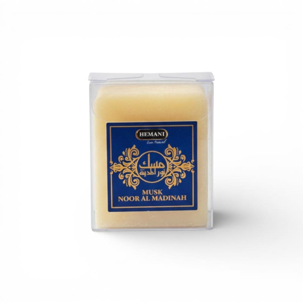 Musc solide Noor Al Madinah Hemani, parfum oriental doux et lumineux. Format compact idéal pour parfumer linge, tiroirs ou petits espaces. Diffusion naturelle, sans flamme ni spray. Une senteur propre et apaisante, inspirée des fragrances traditionnelles orientales.