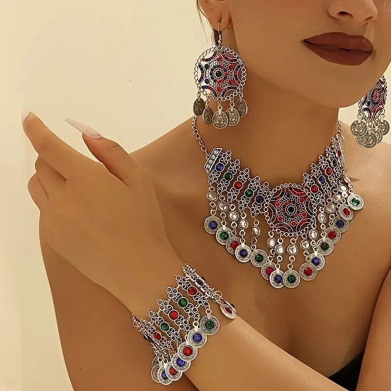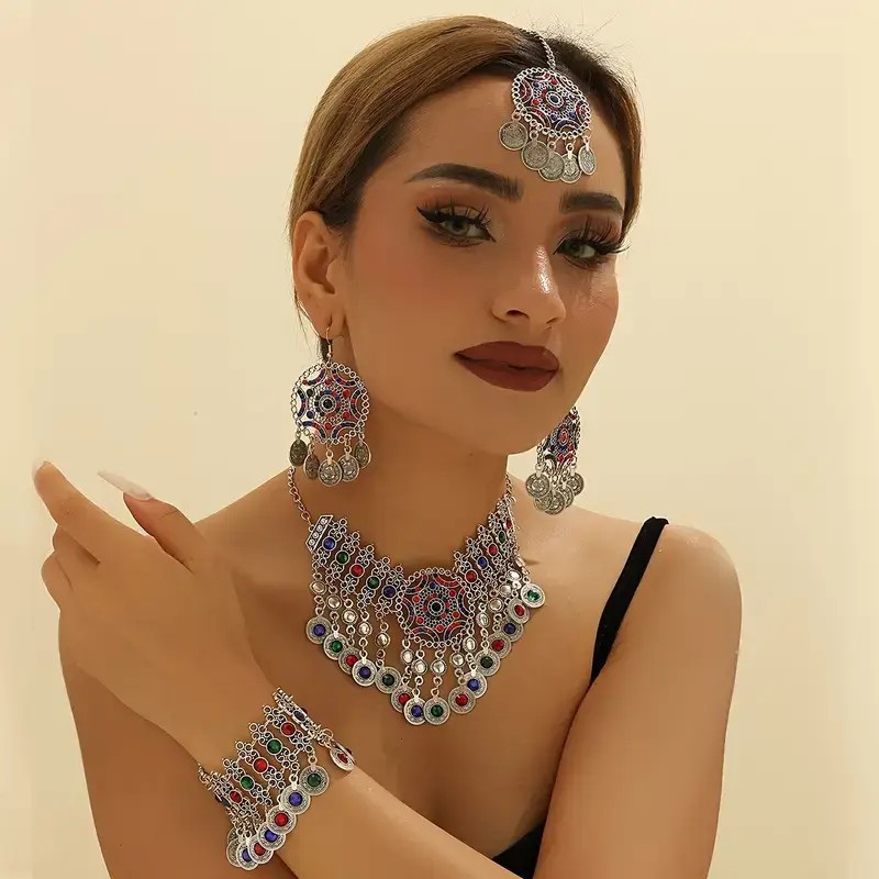 Parure bijoux indiens complète. Idéale pour mariages, spectacles ou tenues Bollywood, alliant authenticité et éclat oriental.