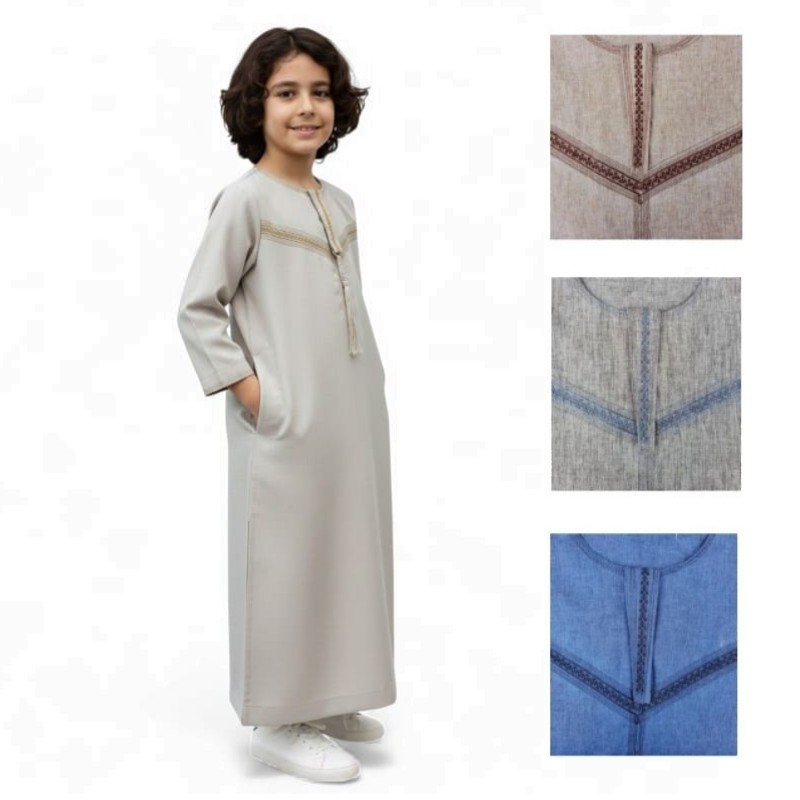 Grâce à sa coupe élégante et son tissu premium, ce qamis enfant peut être porté aussi bien pour des événements formels que pour un usage quotidien. Il offre à votre garçon un look sobre et distingué, fidèle aux traditions orientales.