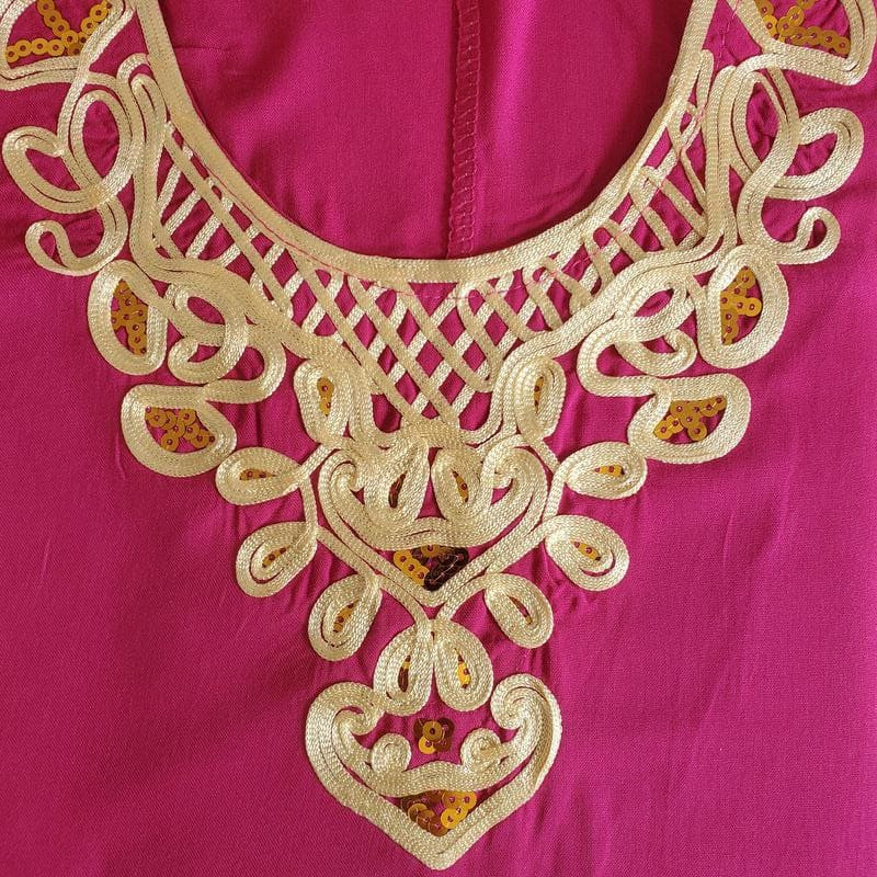 Cette djellaba fille à manches courtes associe élégance et confort pour toutes les occasions, qu’il s’agisse d’une fête familiale, d’une soirée spéciale ou simplement pour le quotidien. Son col rond richement brodé en contraste apporte une touche raffinée et traditionnelle, tout en restant adaptée aux enfants.