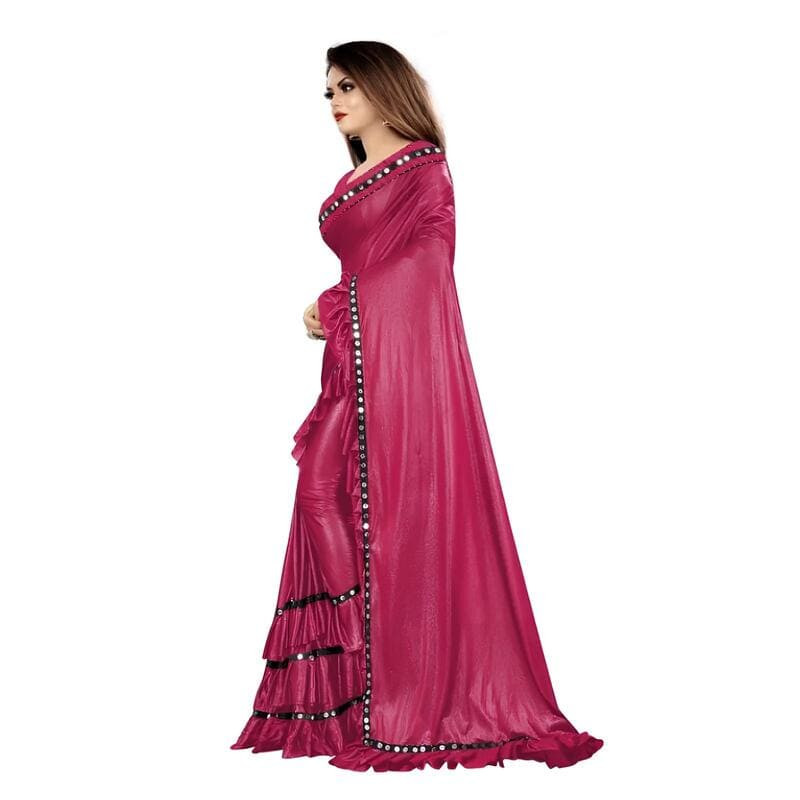 Souvent porté lors de galas et de célébrations, ce modèle séduit pour sa légèreté et sa brillance durable. Les couturières apprécient la qualité de sa trame qui facilite la confection du choli. Un choix de confiance pour toute femme souhaitant un sari à la fois traditionnel et moderne.
