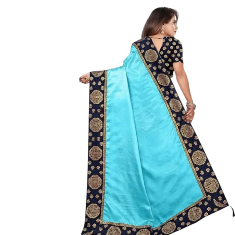 Sari bleu clair traditionnel en viscose, coupon à draper avec choli assorti à coudre, usage polyvalent.