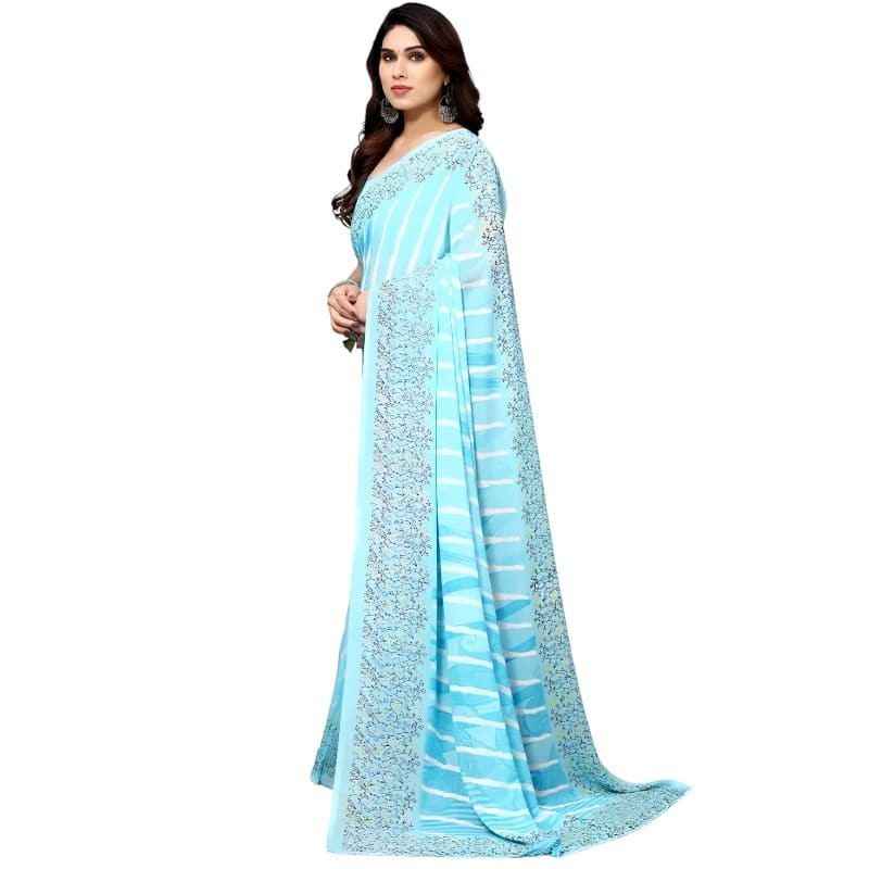 Sari bleu ciel en viscose georgette, idéal cérémonie
