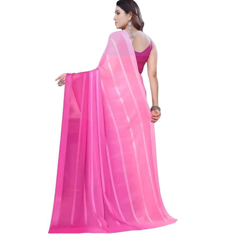 Ce sari indien dégradé rose séduit par sa légèreté et son éclat. Ses nuances allant du rose pâle au fuchsia profond évoquent la douceur et la féminité, tout en conservant la noblesse du drapé traditionnel. Idéal pour les cérémonies, fêtes et mariages, il met en valeur la silhouette avec élégance.