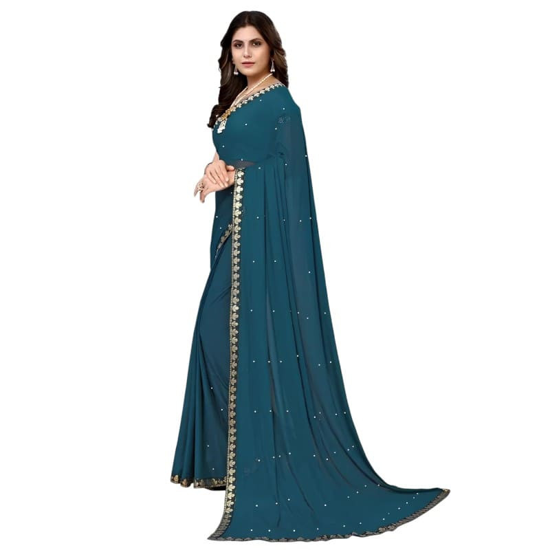 Ce sari indien femme indigo séduit par son élégance épurée et sa teinte profonde, idéale pour sublimer la silhouette sans surcharge visuelle. Il s'agit d'un coupon de tissu à draper orné de petites perles blanches, vendu sans choli, conçu pour offrir une grande liberté de style.