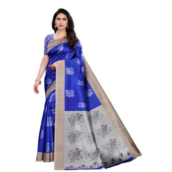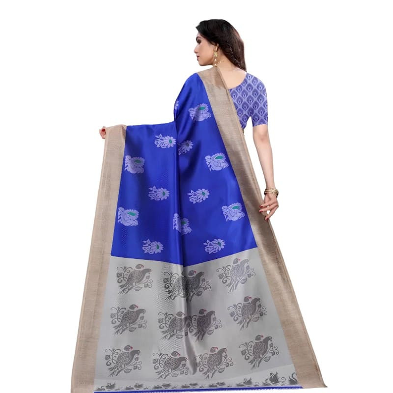 Sari indien bleu royal , idéal pour cérémonies, fêtes traditionnelles et tenues élégantes sur mesure, avec un tombé fluide et un rendu raffiné.