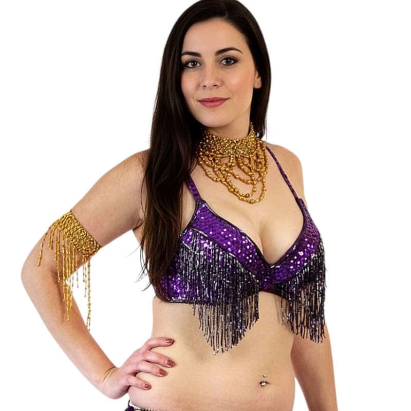 Soutien gorge de danse orientale perlé violet