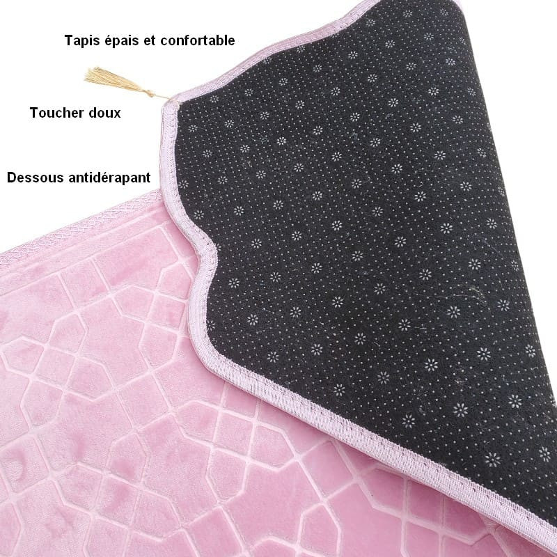Tapis de prière compact en polyester antidérapant, forme Mehrab, doux et léger, idéal prière quotidienne, adultes et enfants.