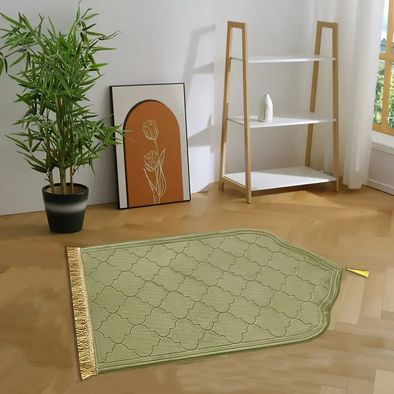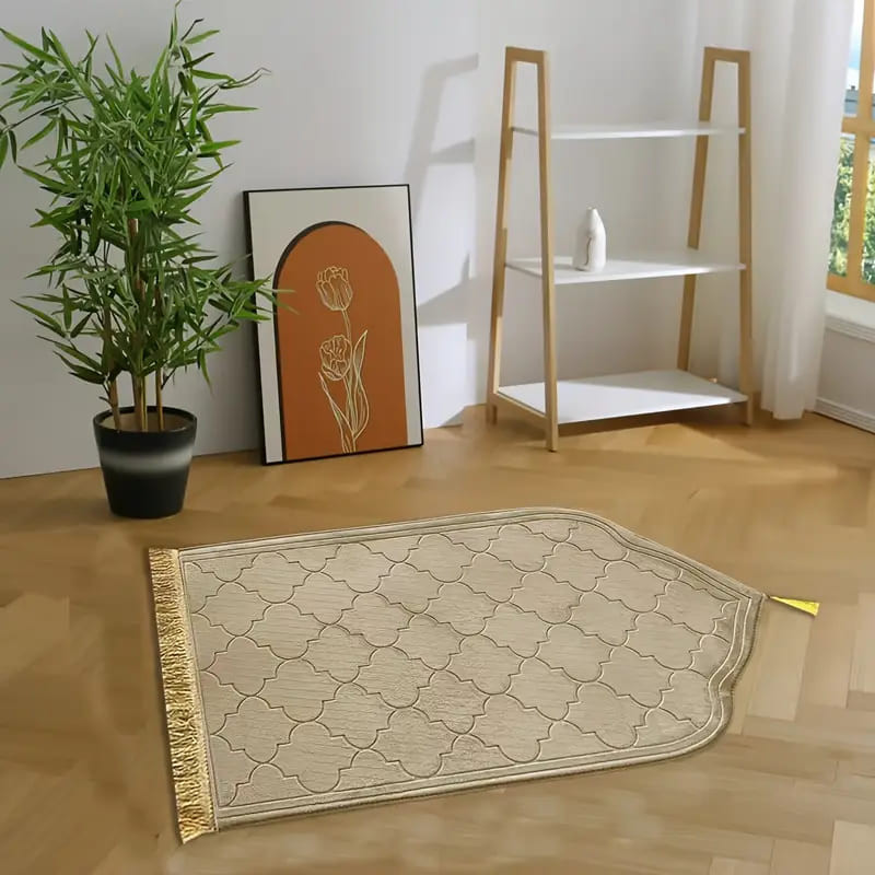 Tapis de prière antidérapant 65×115 cm, doux et raffiné, disponible en plusieurs coloris élégants.