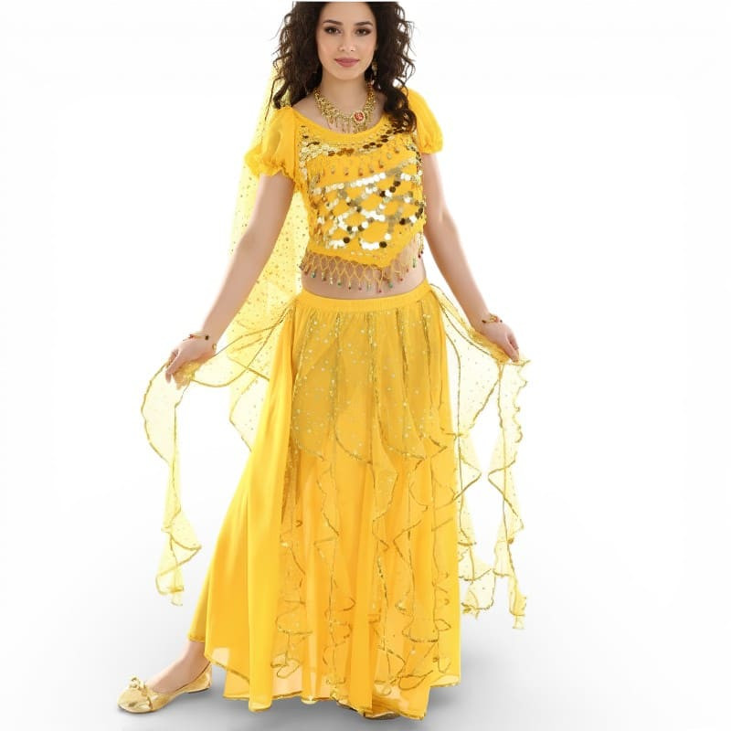 Costume de danse orientale à froufrous brillants Jaune