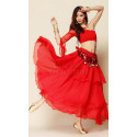Affirmez votre présence avec ce costume de danse orientale 3 pièces rouge, idéal pour les chorégraphies intenses et les scènes vibrantes. Sa couleur passion, sa jupe fluide à volants et son top asymétrique scintillant en font une tenue aussi dynamique qu’élégante.