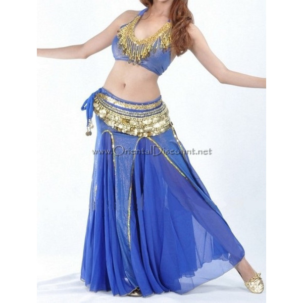 Jupe sirène de danse orientale voilée bleu roy doré