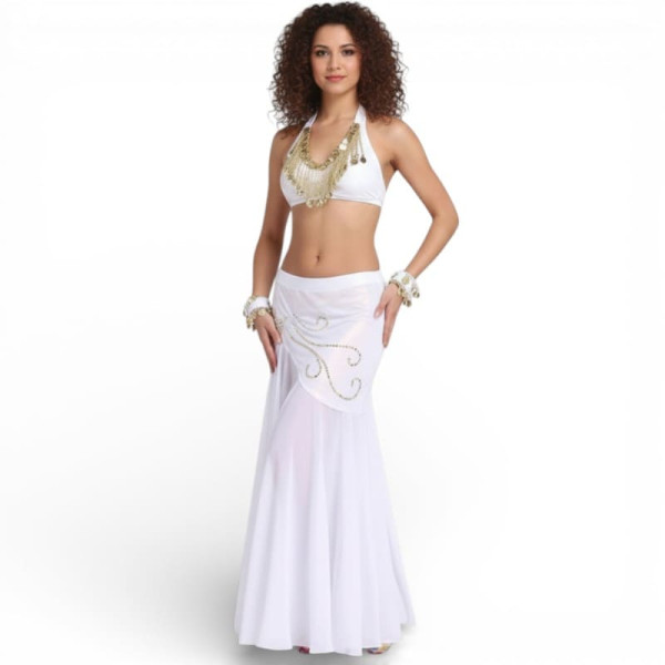 Jupe sirène de danse orientale paillette blanc doré