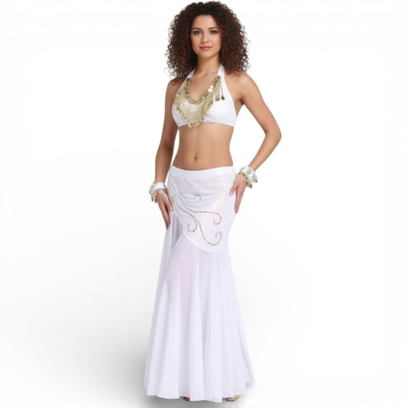 Craquez pour cet élégant ensemble top jupe sirène de danse orientale blanc