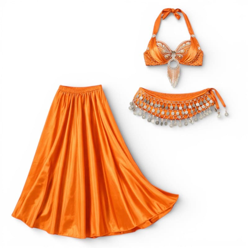 Splendide tenue de danse orientale orange 3 pièces