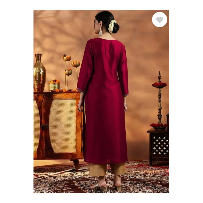Cette Kurti indienne – tunique longue ethnique bordeaux est un choix sûr pour celles qui souhaitent allier tradition, élégance et confort dans une tenue durable et facile à porter.