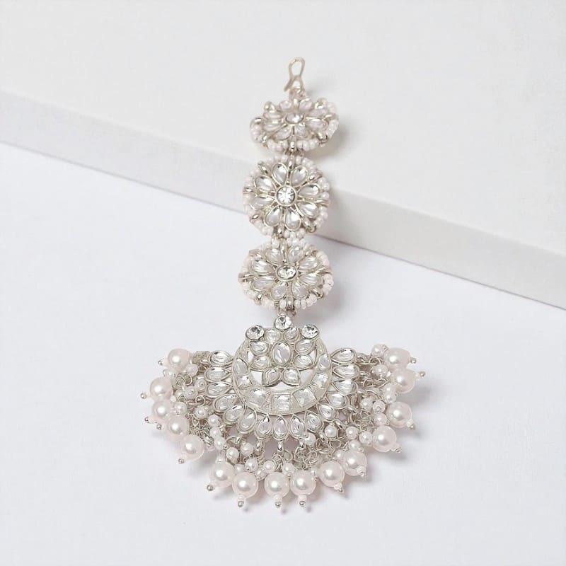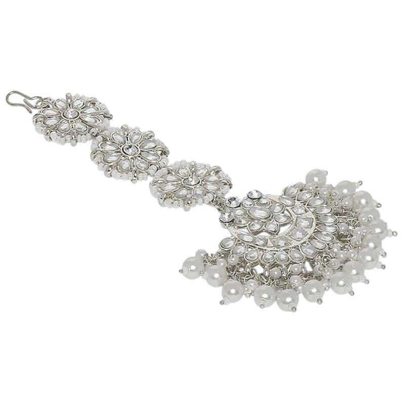 Ornement de front hindou argenté et perles, idéal pour tenues traditionnelles, mariages et séances photo