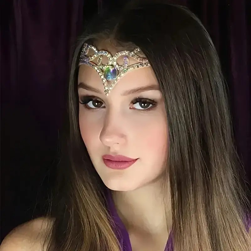 Chaîne de front à strass argentée, élégante et légère, montée sur élastique noir à glisser sous la chevelure.