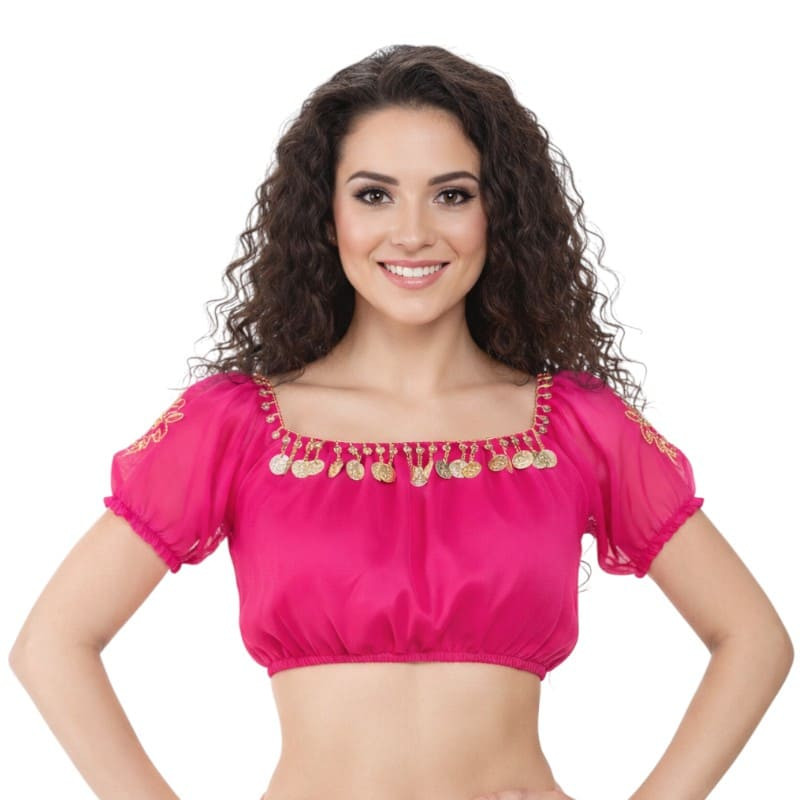 Top pour vos cours , à manches courtes, entiérement élastiqué et décoré de sequins dorés.