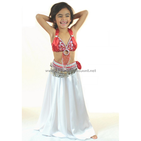 Vous allez craquer pour ce charmant soutien gorge satiné pour enfant, entièrement décoré de pierres et strass avec ses petites franges retombant sur le ventre.