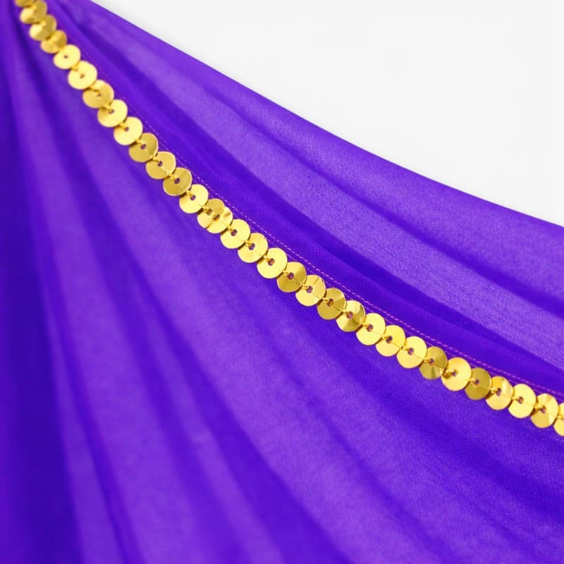 Plongez dans une ambiance envoûtante avec ce voile demi-lune violet pour danse orientale. Sa teinte intense inspire le mystère et la sensualité, tout en sublimant la gestuelle orientale avec grâce et profondeur.